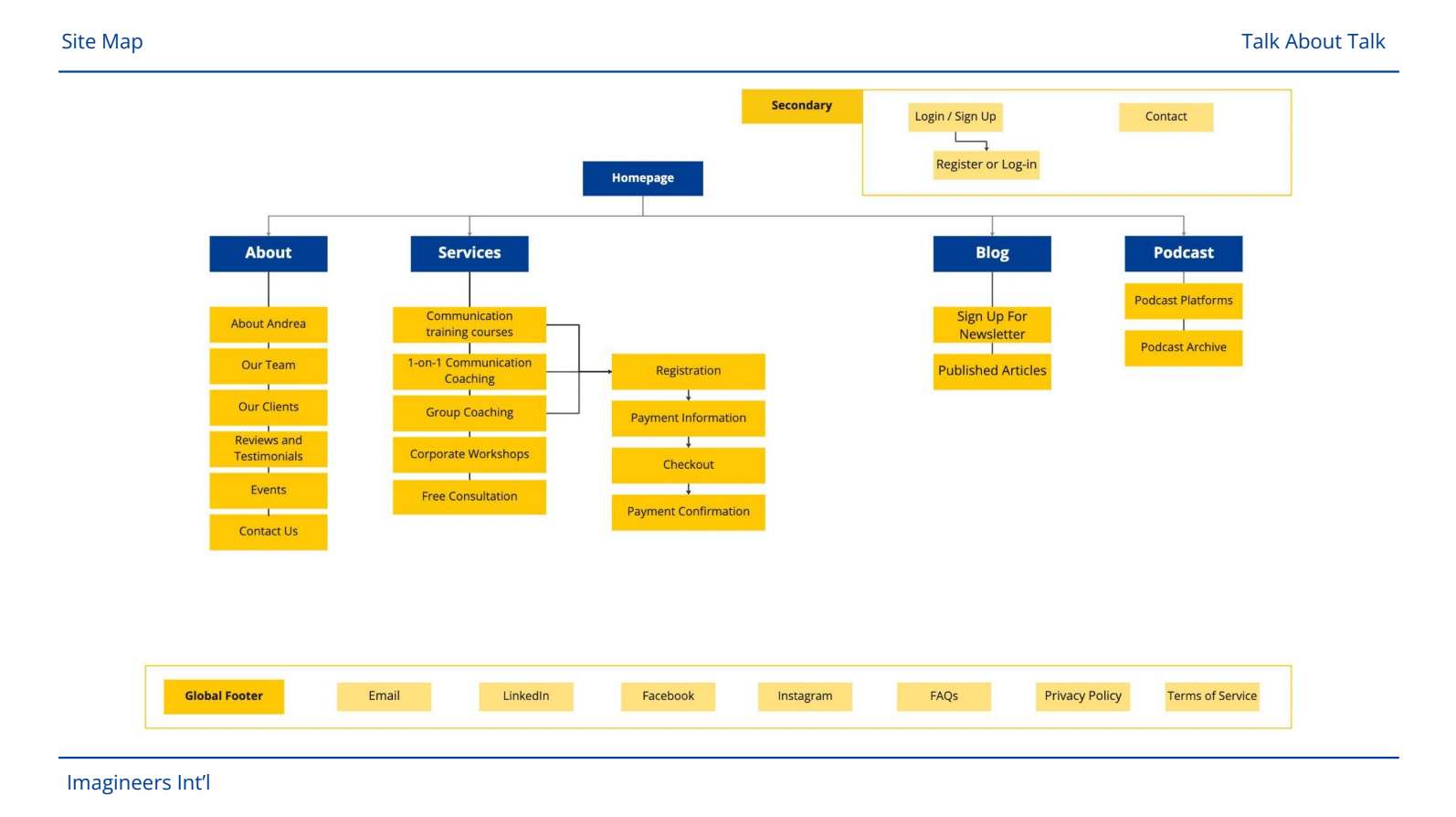 To remedy this, we developed a new sitemap to open a clear path for users towards communications knowledge. We believed that the integration of the new sitemap would increase website engagement, which would also allow for an expansion of Talk About Talk’s clientele.